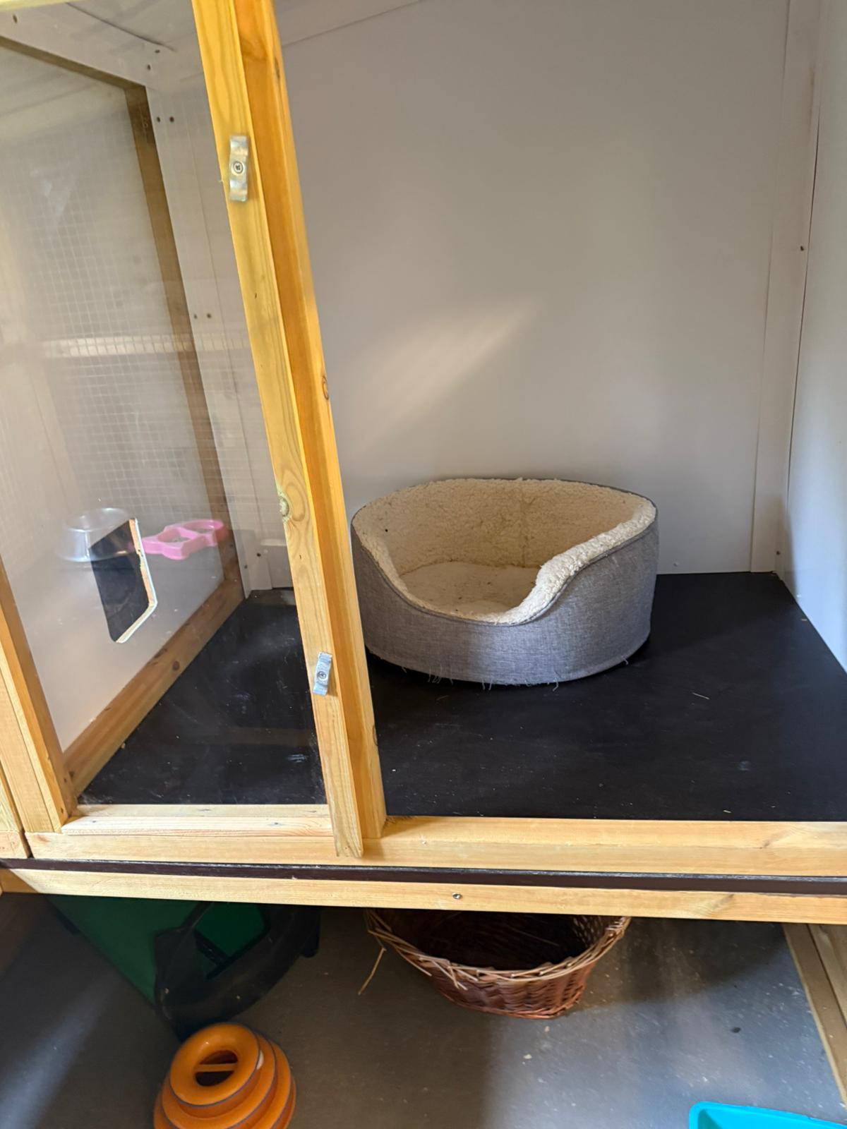 Between each stay, units are fully cleaned and sanitised: bowls are washed after every meal, litter trays are checked and emptied regularly, and the space is steam-cleaned. All bedding is laundered, and units are treated with Indorex to maintain a safe, hygienic environment.